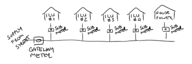 Currently, developments are wired with one meter per dwelling, which means every dwelling buys electricity for themselves. This has been the traditional way developments are wired; it's outdated, it's limiting and expensive to builders.